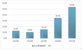 2019年,中國光伏發(fā)電新增裝機為53.06GW,同比增加18.52GW,增速高達53.62%,再次刷新歷史高位。此外,2019年的新增裝機還是2019年的1.5倍、2019年的3.5倍、2014年的5陪和2013年的4倍,由此可見2019年光伏新增裝機出現(xiàn)了大幅快速增長。
