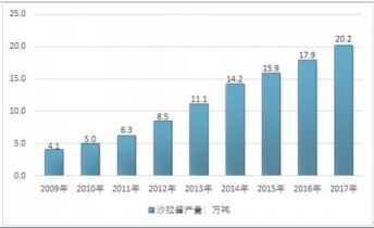 2009-2019年我國(guó)沙拉醬行業(yè)產(chǎn)量情況 |