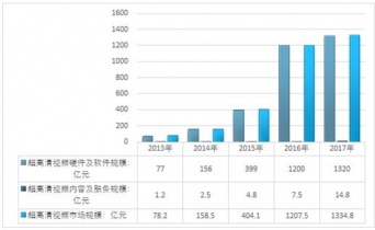 近幾年,我國超高清視頻產(chǎn)業(yè)規(guī)模快速增長,從2013年的78.2億元增長到2019年的1334.8億元。