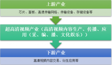 超高清視頻產(chǎn)業(yè)涉及數(shù)十個相關(guān)產(chǎn)業(yè),可以分為三大類,一是基礎(chǔ)層,例如芯片、面板、高速傳輸網(wǎng)絡(luò)、傳輸設(shè)備、存儲設(shè)備;二是高清視頻內(nèi)容生產(chǎn)、傳播、應(yīng)用(采、編、播、文化娛樂);三是高清視頻內(nèi)容交易、衍生應(yīng)用。