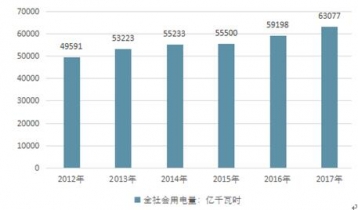 2012-2017年全社會用電量走勢圖 |