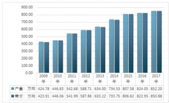 2009-2017年我國紅棗產(chǎn)銷量統(tǒng)計圖