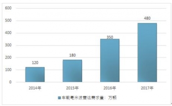 2014-2017年中國毫米波雷達產(chǎn)量情況