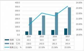 2014-2017年海南免稅業(yè)全國市場份額走勢圖 |