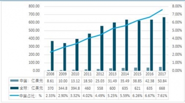 2008-2017年我國免稅業(yè)全球市場份額分析 |