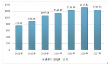近五年,我國糖果市場一直保持8%-12%的年增長率,2017年,我國的糖果產(chǎn)業(yè)規(guī)模已經(jīng)達(dá)到1235.75億元。