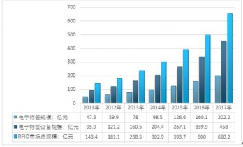 2010-2017年中國RFID產(chǎn)業(yè)規(guī)模情況 |