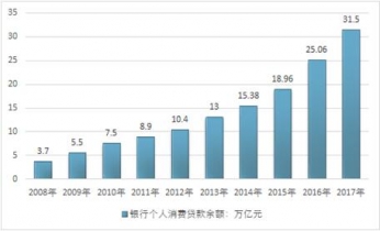 2008-2017年我國銀行業(yè)個人消費貸款余額走勢圖 |