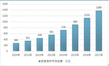2010-2017年中國寵物產(chǎn)業(yè)規(guī)模情況 |