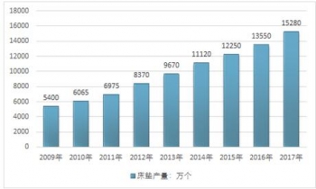 2009-2017年中國床墊行業(yè)產(chǎn)量統(tǒng)計 |