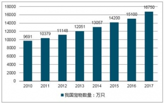 2010-2017年中國寵物數(shù)量規(guī)模情況