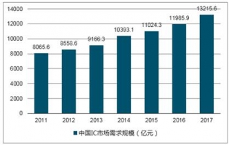 近幾年隨著國內電子行業的崛起,智能手機、平板電腦、汽車電子、工業控制、儀器儀表以及智能家居等物聯網市場快速發展,已在全球市場占據領先地位,同時對各類集成電路(IC)產品需求不斷增長。2000年我國IC市場消費規模僅為945億元人民幣,到2017年已突破1.3萬億,占當年全球半導體產量的50%以上。