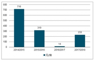 由于國內(nèi)玉米價格回升,2017/2019年度玉米銷售價格較2016/2017年度大幅增長,全國玉米平均種植收益顯著回升,農(nóng)民種植積極性增加。2018/2019年度雖然國家加大東北地區(qū)大豆種植補貼力度,但根據(jù)測算玉米種植收益仍要明顯高于大豆,預計2018/2019年度國內(nèi)玉米種植面積小幅回升。