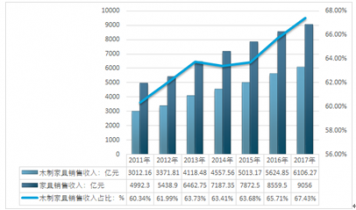 2011-2017年中國木制家具行業(yè)市場規(guī)模及增速 |