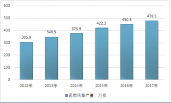 2012-2017年我國乳膠床墊產(chǎn)量走勢 |