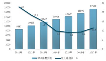 2011-2017年研究與試驗發(fā)展R&D經費支出 |