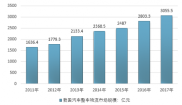 2011-2017年我國汽車物流市場規(guī)模走勢 |