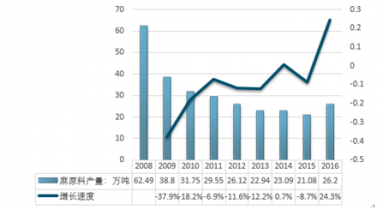 2008-2016年我國麻類作物產(chǎn)量走勢 |