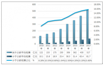 2010-2017年中國分子診斷細(xì)分市場規(guī)模