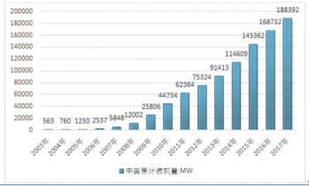 2003-2017年我國(guó)風(fēng)力發(fā)電累計(jì)裝機(jī)容量走勢(shì) |