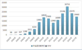 2017年,全國(guó)(除臺(tái)灣地區(qū)外)新增裝機(jī)容量1966萬(wàn)千瓦,累計(jì)裝機(jī)容量達(dá)到1.88億千瓦。