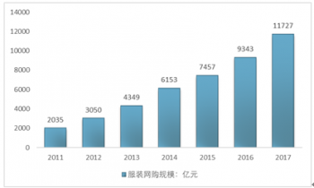 2011-2017年全國服裝網(wǎng)購規(guī)模走勢(shì)圖