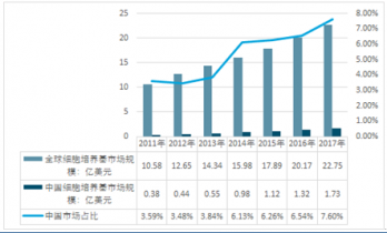 近幾年,我國(guó)細(xì)胞培養(yǎng)基行業(yè)規(guī)模快速增長(zhǎng),占比全球比重日益增長(zhǎng),從2011年的3.59%,增長(zhǎng)到2017年的7.60%。