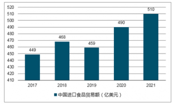 2017-2021年中國進口食品貿易額預測