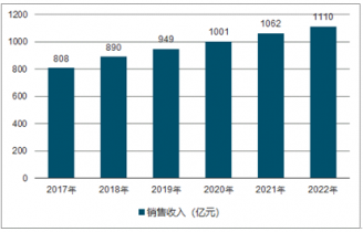 2017-2022年中國(guó)豆制品行業(yè)銷售收入統(tǒng)計(jì)