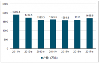 2011-2017年中國豆類產(chǎn)量統(tǒng)計