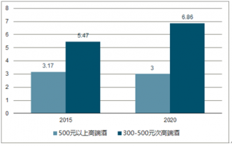 2015和2020年次高端和高端白酒銷量預(yù)計(jì)(萬噸)