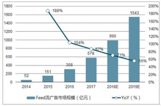 預(yù)計(jì)2019 年Feed 流廣告市場規(guī)模將超過1500 億元