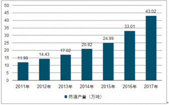 2011-2017年中國(guó)藥酒行業(yè)產(chǎn)量情況