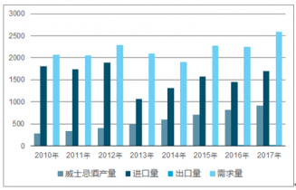 圖表 2016-2018年我國威士忌酒供應(yīng)情況