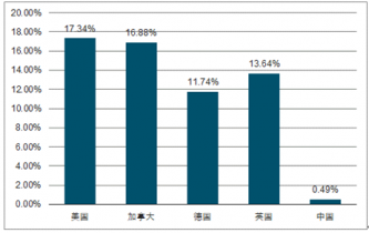圖表:2016-2018年中國健身房市場占全球份額比較
