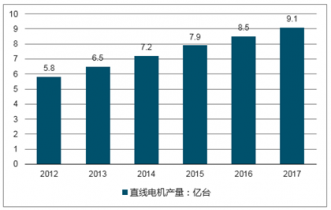 2011年我國直線電機(jī)的產(chǎn)量為5.3億臺;到2017年,直線電機(jī)的產(chǎn)量已達(dá)到9.1億臺。