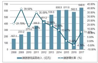 圖表:2016-2018年中國客戶端游戲市場規模及其增速走勢圖