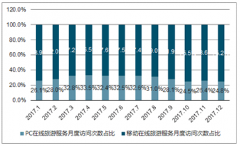 2017年1-12月中國在線旅游服務訪問次數(shù)結構
