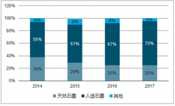 2014-2017 年不同鋰電池負(fù)極材料類型出貨量占比