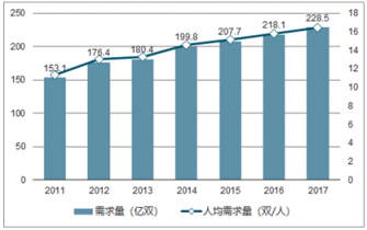 2011-2017年中國襪子需求量及人均消費(fèi)量分析