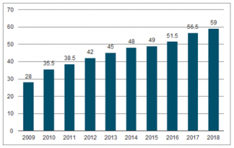 車用PCB市場規模由2009年的28億美元增至2015年的49億美元,年復合增長率為9.78%,到2018年有望接近60億美元。