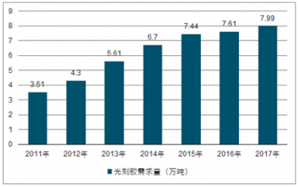 2011-2017年中國光刻膠行業(yè)需求量情況