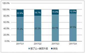 2017Q1-Q4中國外賣市場份額占比