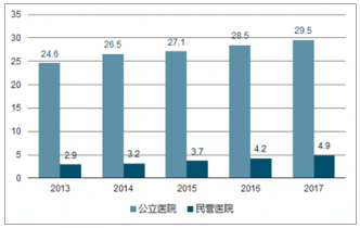 2013-2017年中國醫(yī)院診療人次數(shù)統(tǒng)計(jì)