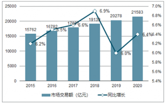 近年來,國內(nèi)生鮮電商市場得到了高速的發(fā)展。生鮮是電商中門檻最高、 要求最高的品類,其中物流運(yùn)輸環(huán)節(jié)起到關(guān)鍵作用。隨著國內(nèi)生鮮電商市場的崛起,物流需求帶動(dòng)冷鏈物流市場的快速發(fā)展。據(jù)數(shù)據(jù)顯示,2017年生鮮市場交易規(guī)模達(dá)17897億元,同比增長6.6%。2018年中國生鮮市場市場交易額將近20000億元,漲幅近7%。