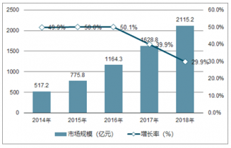 2017年中國咖啡市場規(guī)模達到1628.8億元,增長率達到39.9%;隨著人們消費觀念的轉變,西方的商品及消費習慣慢慢被接受,2018年市場規(guī)模將有望突破2000億元大關。