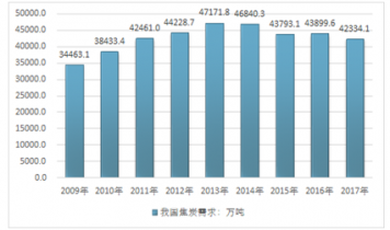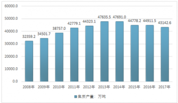 根據國家統計局數據2015年我國焦炭產量為778.2萬噸,2016年產量為911.5萬噸,產量較上年同期增加0.3%。2017年全國焦炭產量為4.31億噸,同比下降3.3%,其中鋼鐵聯合企業焦化廠為11265.5萬噸,同比下降1.93%,其它焦化企業為31877.1萬噸,同比下降3.73%。