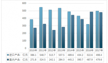 2017年我國乙二醇進(jìn)口產(chǎn)品市場規(guī)模為498.4億元,國內(nèi)產(chǎn)品市場規(guī)模為479.6億元。