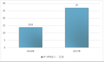 2017年全國國內互聯網虛擬專用網業務收入約27億元,同比增長95.7%。