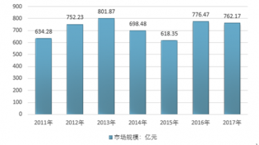 2011-2017年我國日用陶瓷市場規(guī)模走勢圖 |